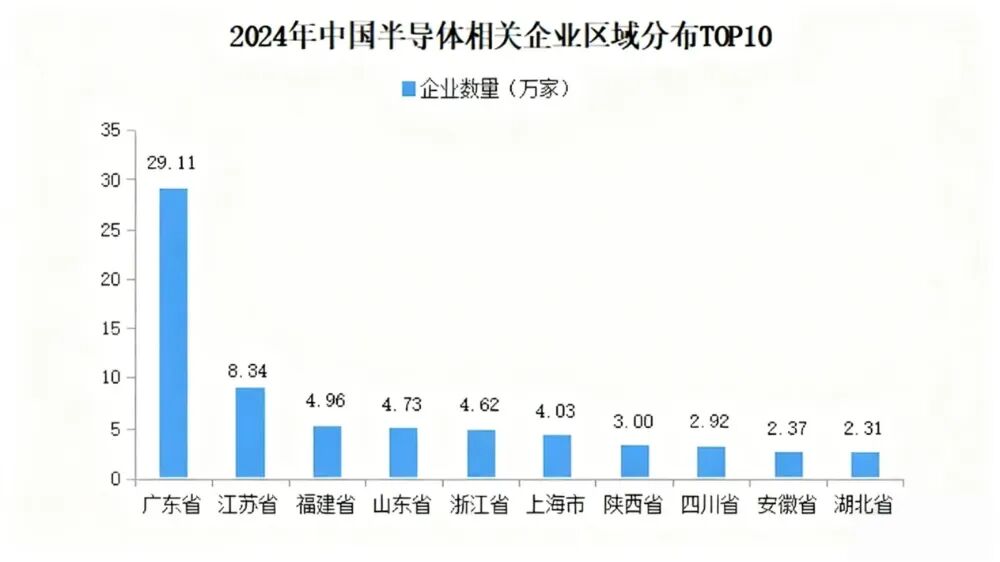 山东省半导体相关企业数量排在全国第4