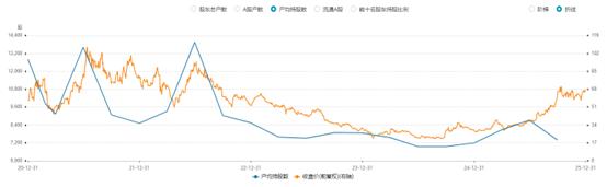Wind数据显示从户均持股数来看,22年以来随股价下探而减少,25年经历了先升后降的趋势,可转债转股后,控股股东持股有所稀释。但我们也观察到,基金的持股比例由年初的12.59%提升至13.36%,增持3925.72万股。考虑到季报仅公布前十大股股票明细,实际持仓或更高。