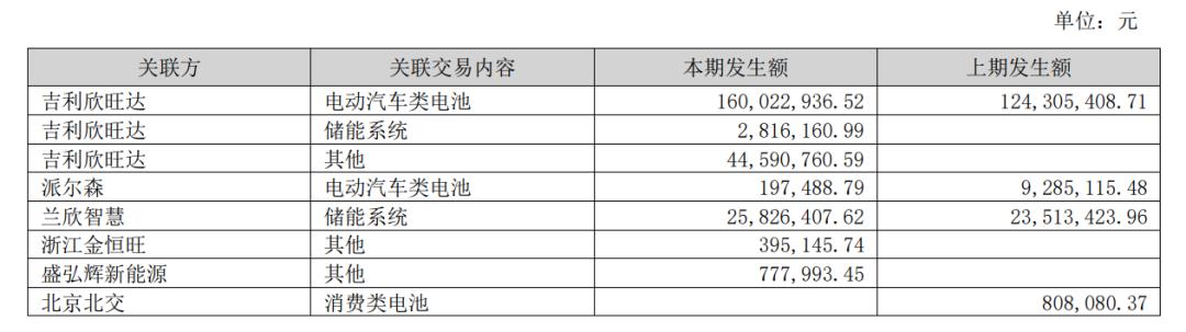 天眼查信息显示,山东吉利欣旺达目前由吉利系控制70%的股权,欣旺达动力持股30%。据欣旺达2024年财报,当年欣旺达动力与山东吉利欣旺达之间还有超过1亿元的关联交易,其中还有1.6亿元用于购买电动汽车类电池。