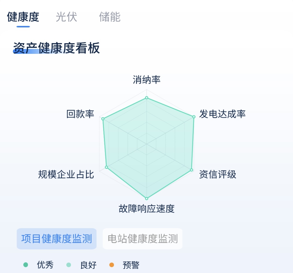 更关键的是,港华打造了“资产健康度看板”可视化系统,打破传统财务报表局限,将资产管理规模(AuM)与项目海量数据融合,动态监测消纳率、发电完成率、回款率等六大核心指标。一旦指标低于预设基线,系统自动触发预警,联动本地化运营团队快速响应,将非标运维转化为标准化风控流程——这不仅让资产状况实时透明,更确保了底层资产的长期健康度,为持续稳定的现金流再加一道“安全锁”。
