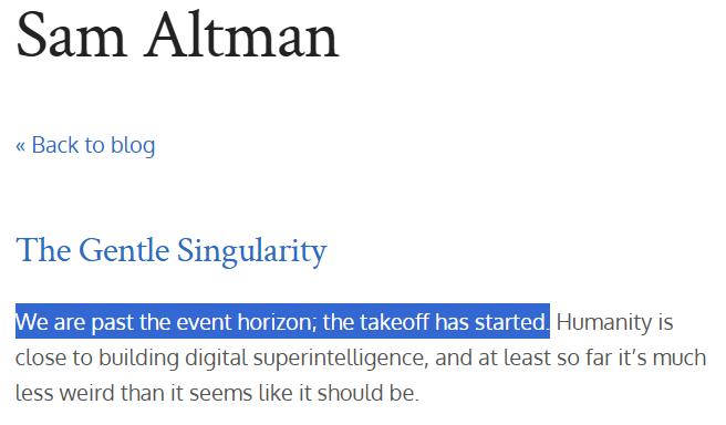 2025年6月10日,OpenAI掌门人Sam Altman发布了一篇震动业界的博文「温和的奇点」(The Gentle Singularity)。