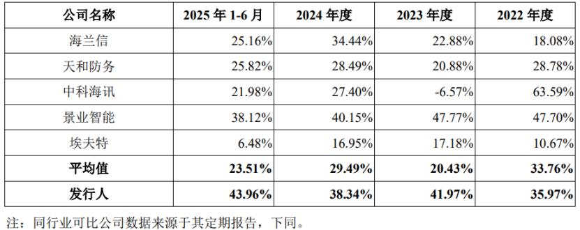 报告期内,深之蓝的主营业务毛利率分别为35.97%、41.97%、38.34%和43.96%,高于海兰信、天和防务、中科海讯等可比公司主营业务毛利率均值,主要系不同公司的具体产品、下游应用场景、市场竞争程度、管理经营战略等不同所致。