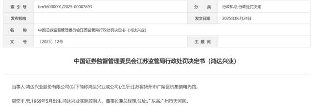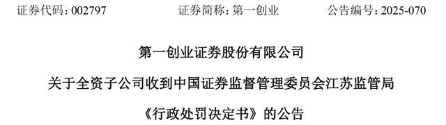 2025年10月29日,中国证监会决定对一创投行立案;12月25日,一创投行收到江苏证监局《行政处罚决定书》:在鸿达兴业2019年可转债项目持续督导期间,一创投行未勤勉尽责,包括“未充分核查募集资金投入及归还情况;未按规定发表核查意见,导致出具的相关持续督导文件存在虚假记载;未按规定履行督促及报告义务”。