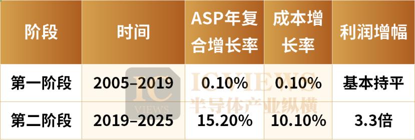 根据Semi Analysis最新研究,台积电晶圆ASP(平均售价)在过去二十年呈现出明显的“断崖式增长”:从2005年到现在的20年可以分为两个阶段,2005年—2019年以及2019年—2025年。