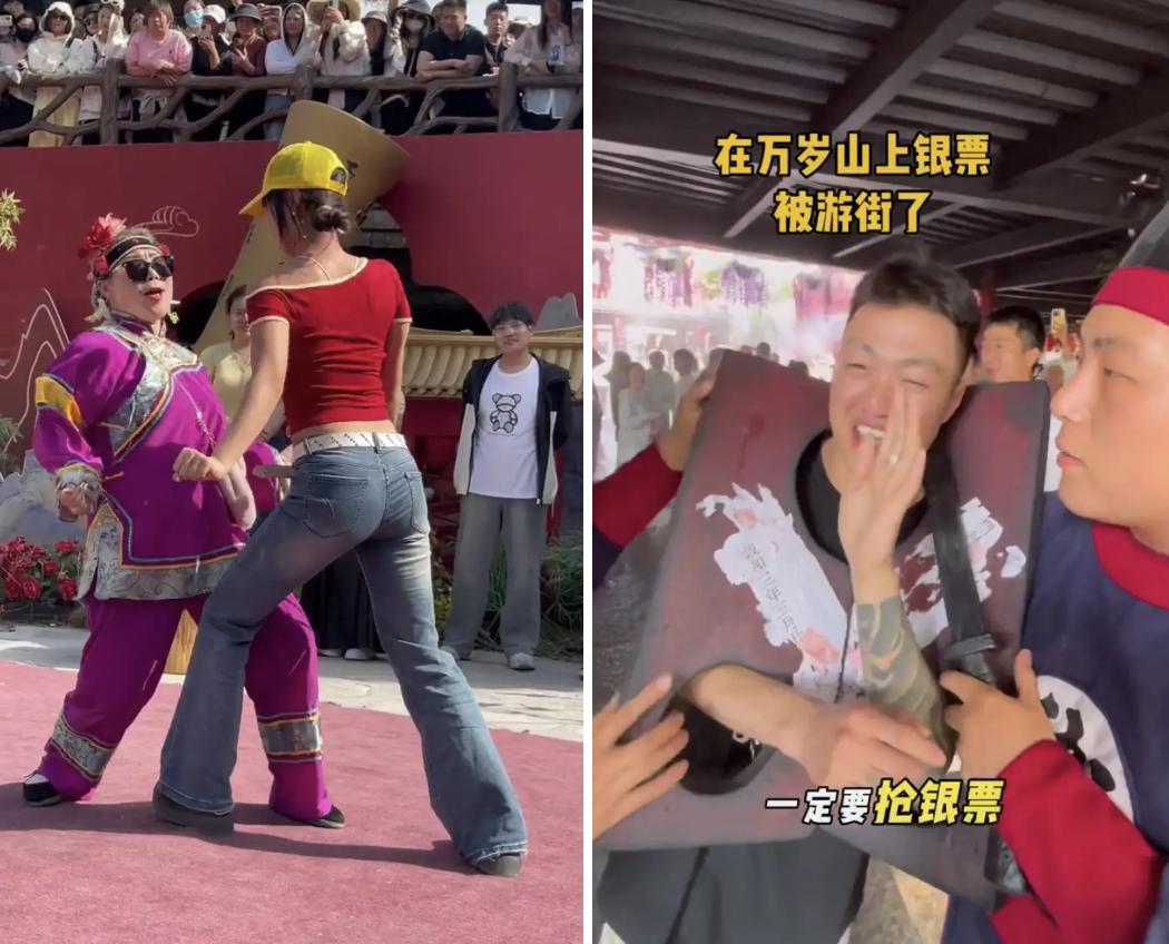游客和NPC斗舞游客抢银票被衙役抓住游街
