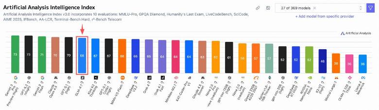 在模型能力持续扩展的基础上,智谱近期发布了GLM-4.7。在全球知名的权威大模型评测榜单“AA智能指数”中,GLM-4.7以68分综合成绩荣登开源模型与国产模型双料榜首。在全球百万用户参与盲测的权威编码评估系统Code Arena中,GLM-4.7位列开源第一、国产第一,超过GPT-5.2。