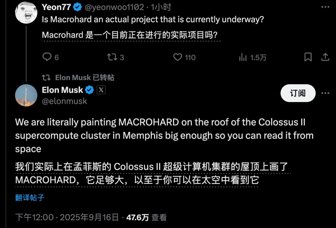 后续,马斯克承认Colossus II正是巨硬计划的一部分。