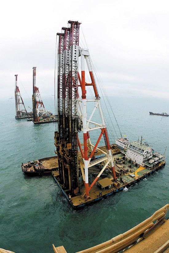 正在打桩的港珠澳大桥