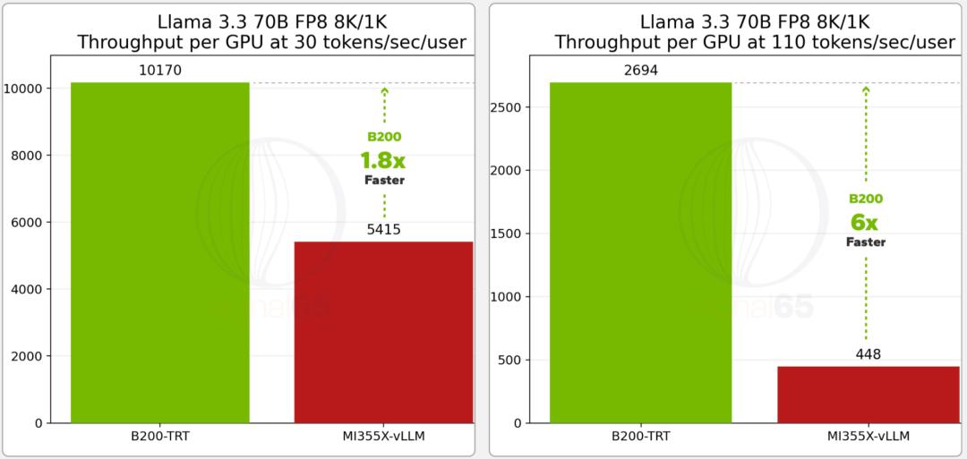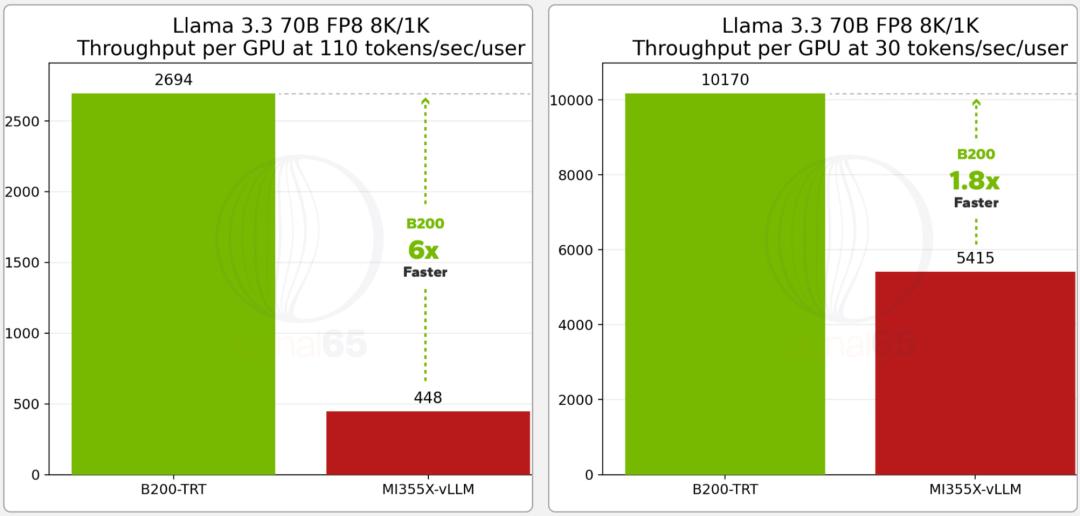 整体上,在Llama 3.3 70B测试中,AMD MI355X在单位成本性能方面确实具备一定吸引力。